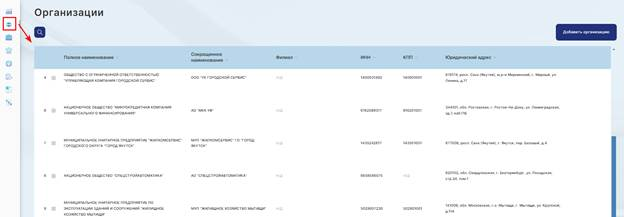 Рис.1 Главный экран раздела "Организации"