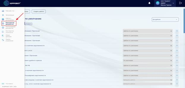 Конструктор документоврасполагается в главном менюличного кабинета Системы(Рис.1). Инструмент позволяет создавать, редактировать различные типы документов, которыми апеллирует ваша компания.
