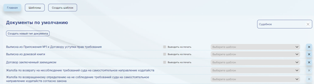Шаблоны можно назначить в категориях «Документы по умолчанию», «Документы для участка мирового судьи», «Документы для участка районного суда».