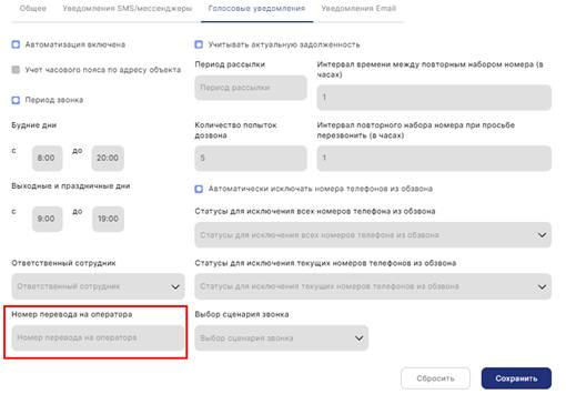 ·Номер перевода на оператора -внутренний номер оператора для личного общения с должником (Рис.5)