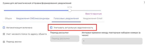 ·Период рассылки -при активации этой функции нужно выставить расписание для указания периодичности обзвона должников.