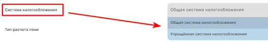 ·Система налогообложения– из выпадающего списка нужно выбрать общую или упрощенную систему. (Рис.10). Тип налогообложения используется для составления договоров, выставления счетов, актов со стороны сервиса.