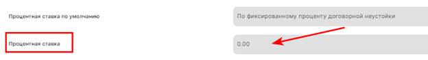 При выборе «по фиксированному проценту договорной неустойки» появится новое поле «Процентная ставка», где необходимо ввести процент ставки ежедневного начисления пени (к примеру, 0,2%). (Рис.13)