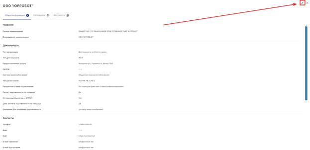 Чтобы отредактировать данные организации или добавить информацию нужно перейти в режим редактирования. Сделать это можно двумя способами: