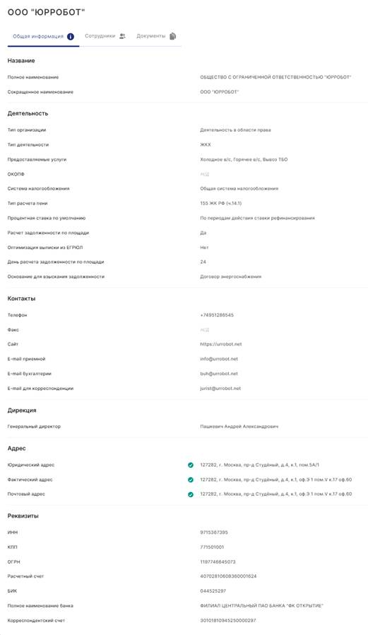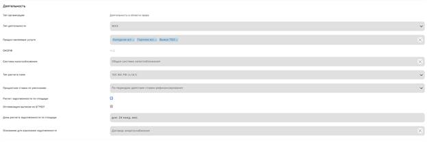 ·Тип организации– тип деятельности организации, информация загружается автоматически. Отображается тип деятельности, указанный в выписке из ЕГРЮЛ.