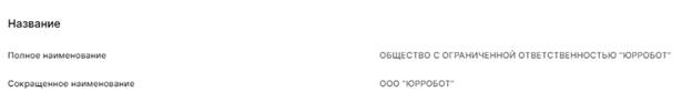 Полное и сокращенное наименование организации заполняется автоматически с сайта ФНС и не может быть отредактировано (Рис.6)