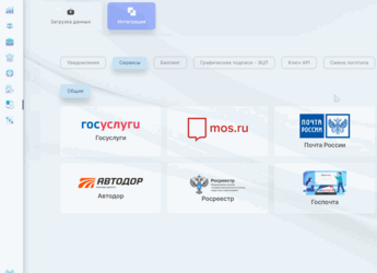 Затем переходим в систему ЮРРОБОТ в меню «Обмен данными», раздел «Интеграция», вкладка «Сервисы», «Общие», нажимаем иконку «mos.ru»или поссылке