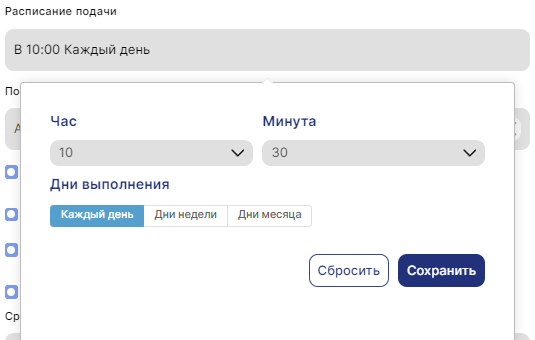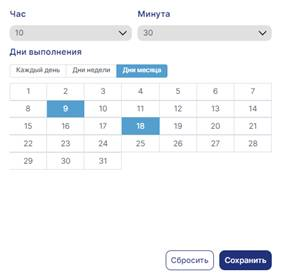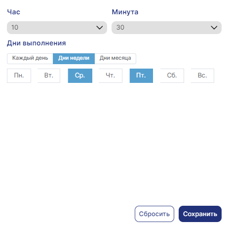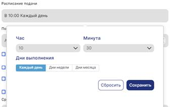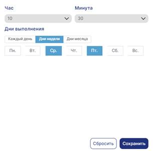 При активации этой функции нужно выставить расписание для указания периодичности формирования и ожидания подписания ЗВСП / исков по заданному времени. (Рис.18)