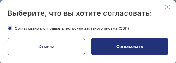 Если выбрано ЭЗП: для выбранных должников установить статус: "Согласовано к отправке электронно заказного письма (ЭЗП)"