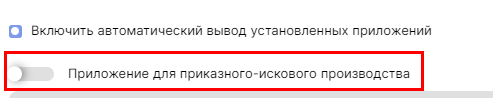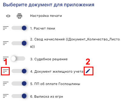 После активации функции автоматического вывода установленных приложений дополнительно активируется поле выбора основного документа (на скриншоте помечено цифрой 2). (Рис.25)
