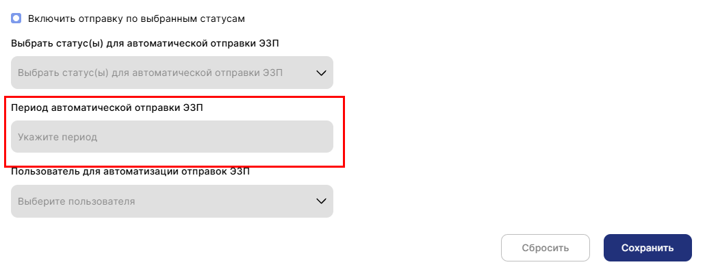 При помощи этой функции нужно выставить расписание для указания периодичностиотправки ЭЗП. (