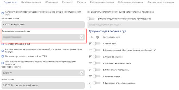 Настройка автоматической отправки документов в суд, подписанных ЭЦП для согласованных должников