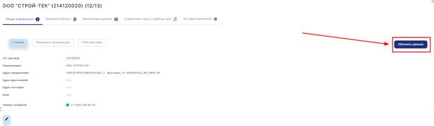 Обновление данных по юридическому лицу