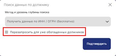 Также можно перезапросить данные для уже обогащенных должников (Рис.3)