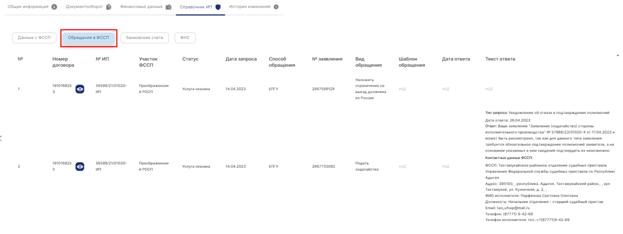 Отправленные запросы и полученные ответы из ФССП направляются в «Карточку должника».