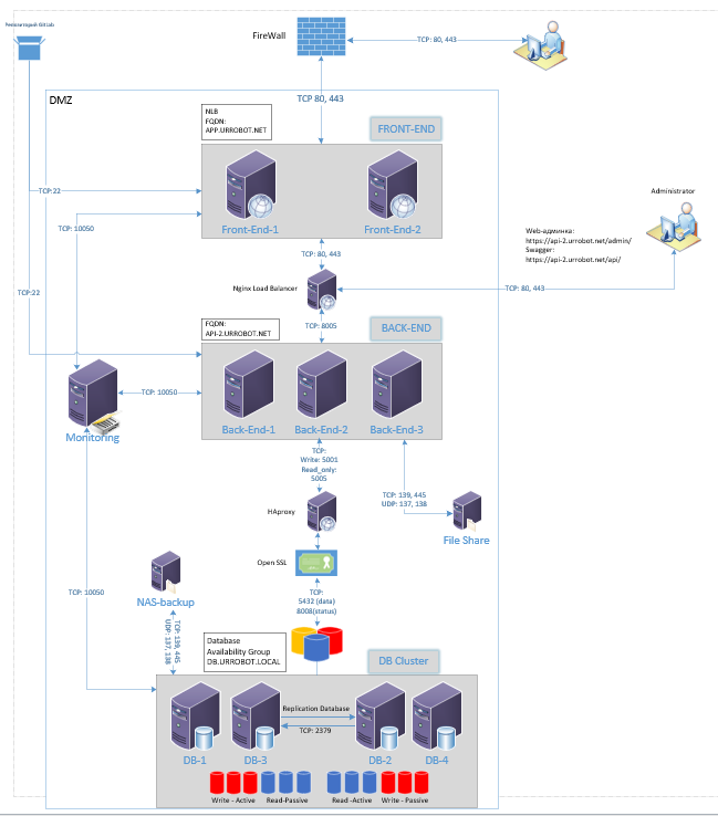 В штатном режиме серверный уровень ПАК «ЮРРОБОТ» функционирует на двух площадках ЦОД.
