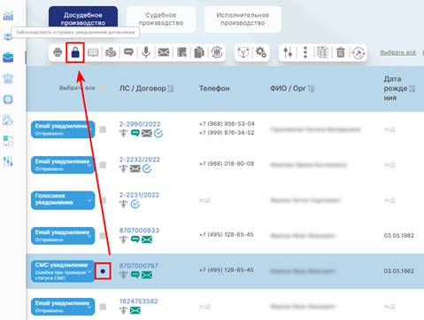 При использовании этой функции, выбранным должникам не будет проводиться отправка любых уведомлений. (Рис.1)
