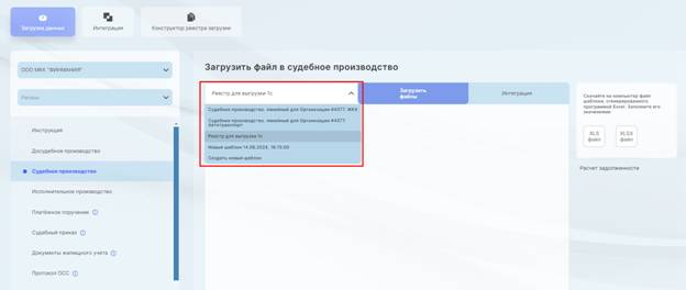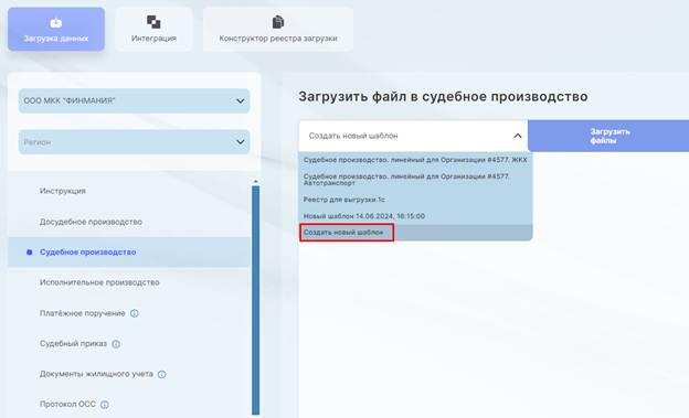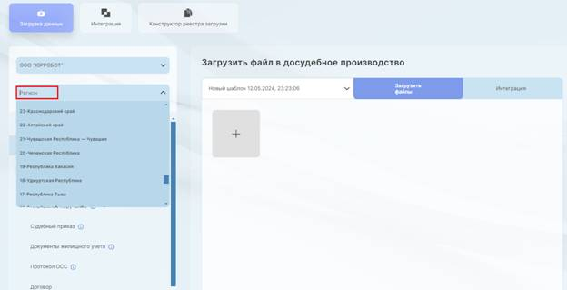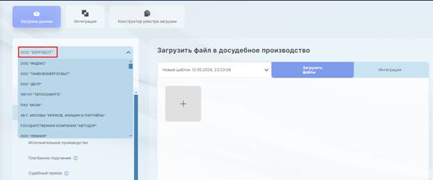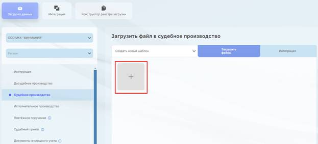 Загрузка файла в досудебное, судебное, исполнительное производство