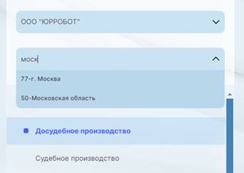 ·Выбрать тип производства (досудебное, судебное, исполнительное). (Рис.1)