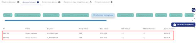 После получения данных открываем карточку должника – раздел «Документооборот» - «ПП об оплате госпошлины» и проверяем данные, загруженные Системой. (Рис.9)