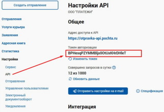 При необходимости автоматизированной отправки заказных писем через Почту России необходимо заключить договор на отправку электронно-заказных писем, после заключения договора получить у менеджера или технической поддержки или в личном кабинете Почты России «Токен авторизации» (Рис.13)