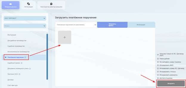 Загрузить платежное поручение об оплате пошлины можно следующими способами: