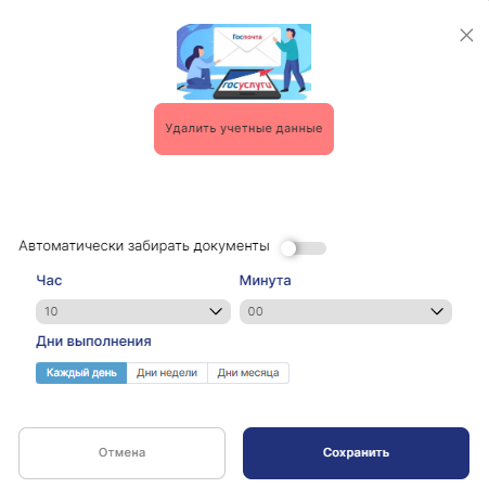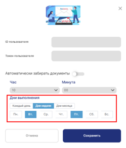 ·     Автоматически забирать документы – выбрать опцию можно переместив ползунок вправо