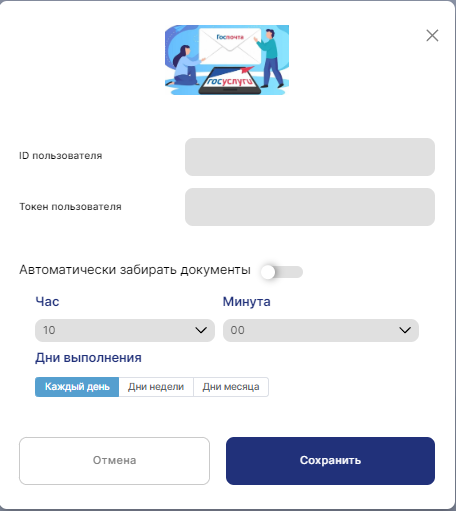 По окончании настроек нажать «Сохранить». Если ID и токен корректны, они сохранятся в системе и будут записаны в настройках Госпочты (Рис.7)